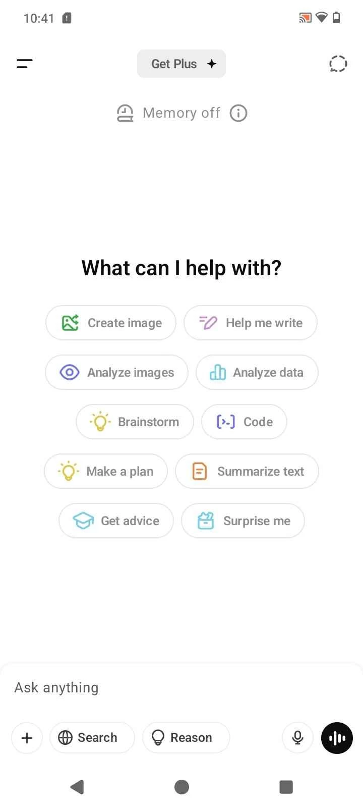 Você pode baixar e instalar o ChatGPT no site oficial, na Google Play Store ou simplesmente clicando no botão "Baixar" na página. Inicie o aplicativo clicando no ícone que aparece na tela inicial e conclua o processo de login usando sua conta do Google ou crie uma nova conta. Você será direcionado para a tela principal com uma caixa de texto no centro. Aqui, você tem três maneiras de inserir suas consultas: